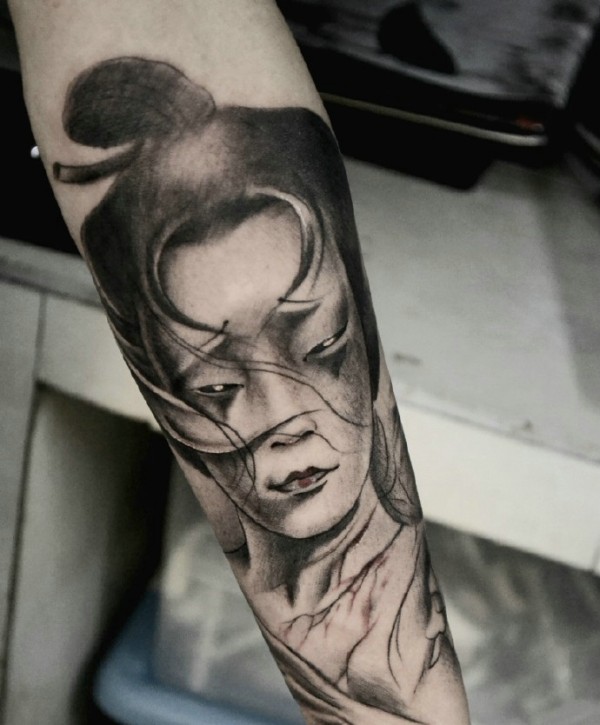 能面万媚纹身手稿_52张日式能剧面具纹身手稿图案素材欣赏