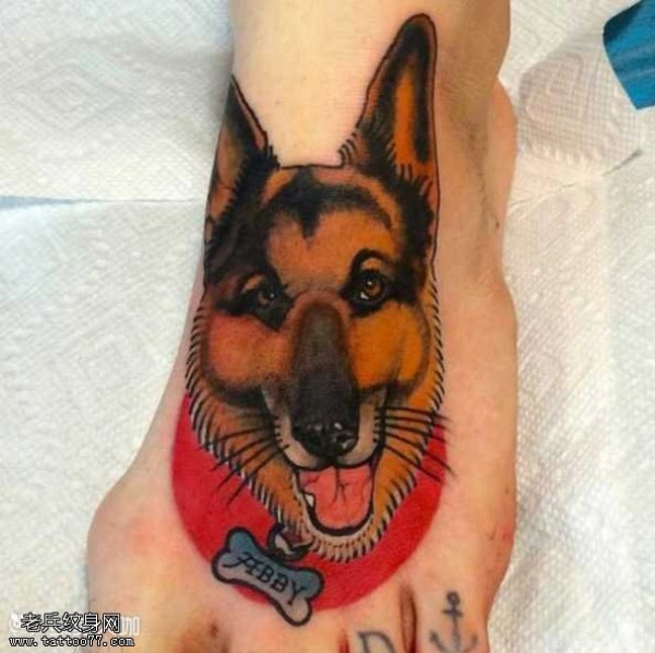 脚部狗头纹身图案