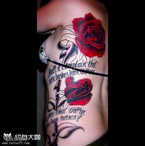 分享一款腰部时尚性感的蝶恋花纹身图案_腰部纹身图案大全_纹身图吧