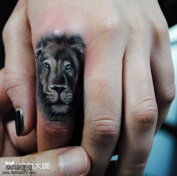 手指黑狮子纹身图案