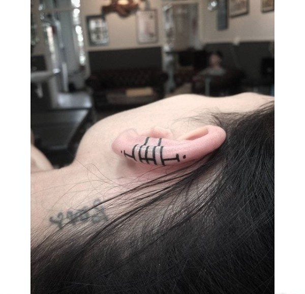 多款女生耳后黑色线条素描文艺小清新小图案纹身图案