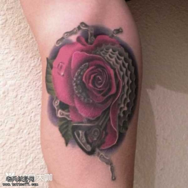 腿部玫瑰纹身图案