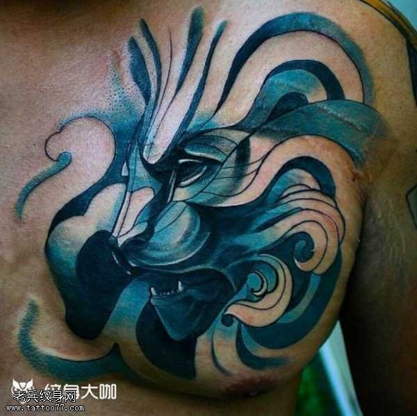 胸部篮彩狮子纹身图案
