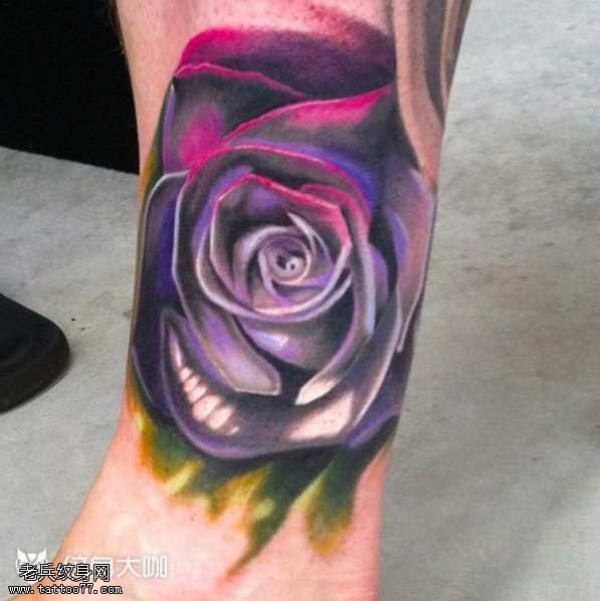 腿部紫玫瑰纹身图案