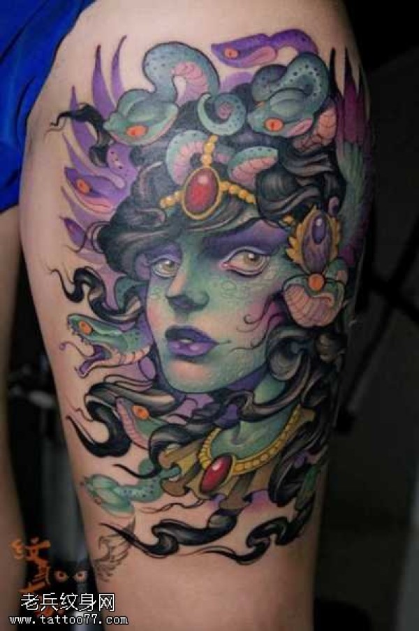 腿部美社莎纹身图案