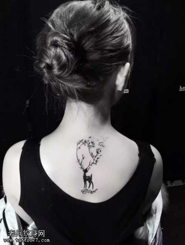 背部小清新鹿纹身图案