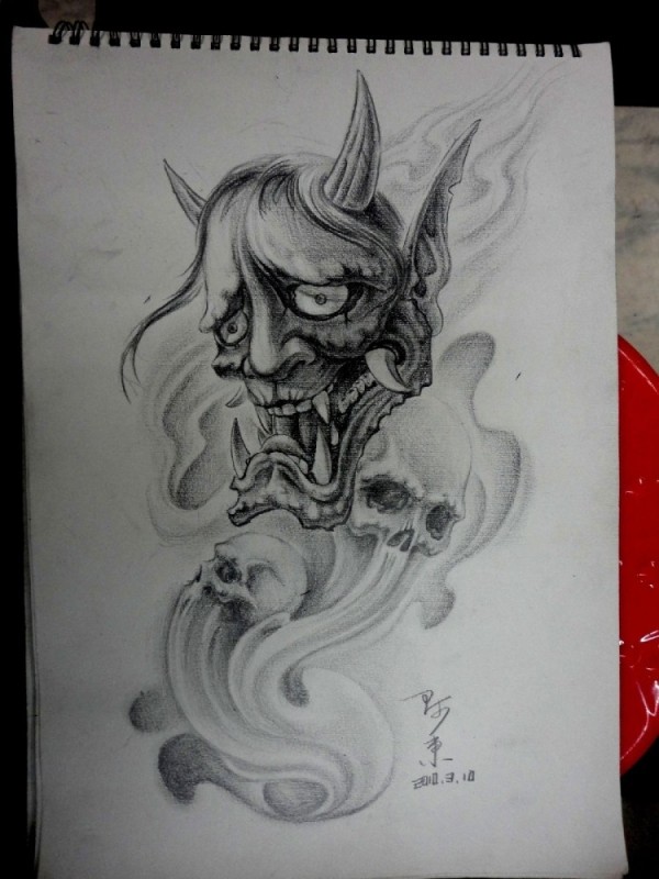 能面万媚纹身手稿_52张日式能剧面具纹身手稿图案素材欣赏