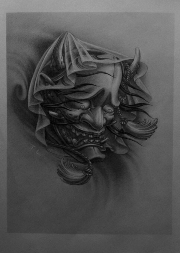 能面万媚纹身手稿_52张日式能剧面具纹身手稿图案素材欣赏