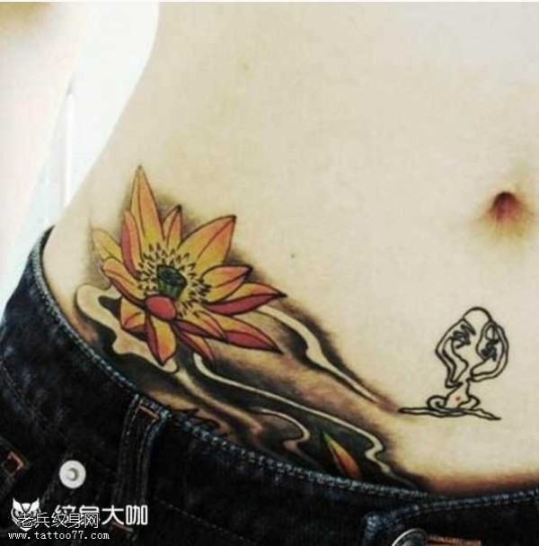 女性腰部莲花花纹刺青_腰部纹身图案大全_纹身图吧