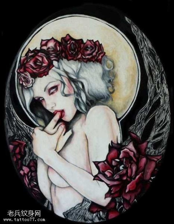 传统艺妓般若纹身图案手稿