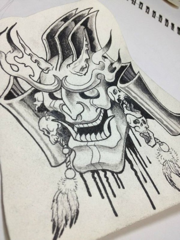能面万媚纹身手稿_52张日式能剧面具纹身手稿图案素材欣赏