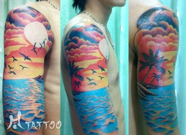 清新淡雅 北京newtattoo纹身店陈洁山水水墨纹身 (一)