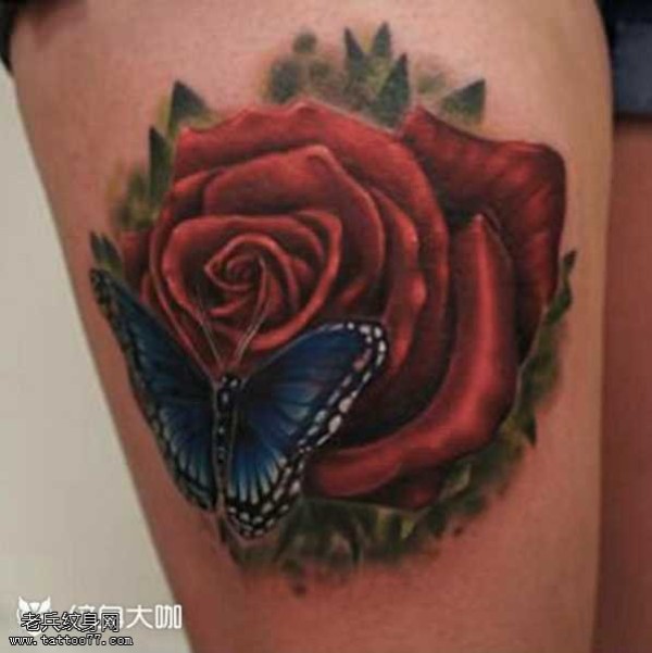 腿部玫瑰纹身图案