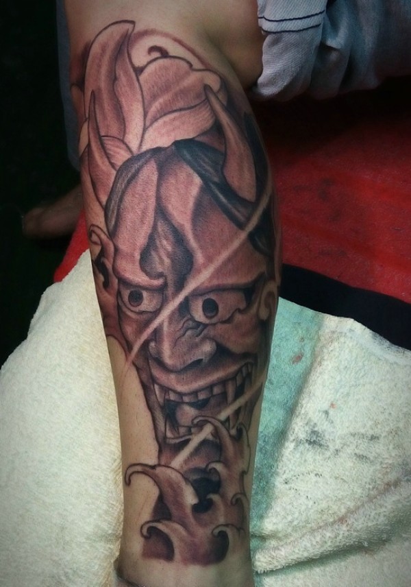 老传统经典霸气腿部般若纹身图案