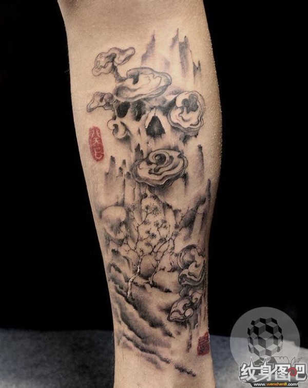 清新淡雅 北京newtattoo纹身店陈洁山水水墨纹身 (一)