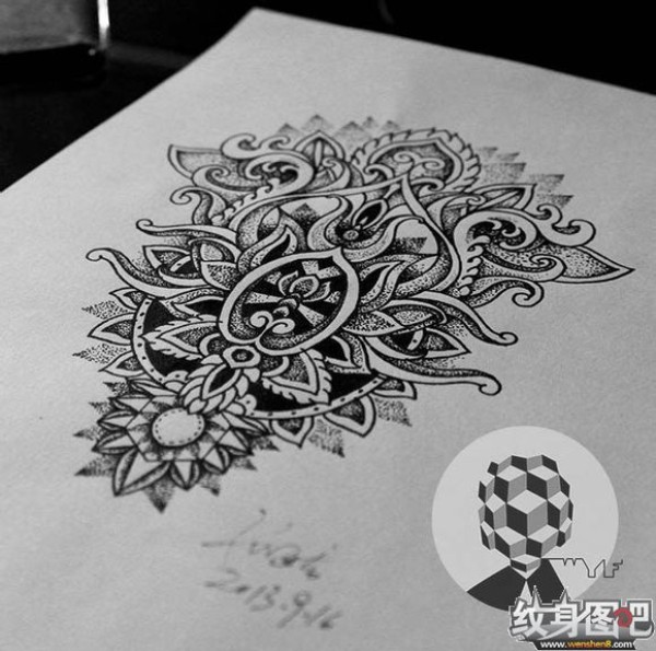 曼陀罗点刺梵花_100张曼陀罗点刺梵花纹身手稿图案