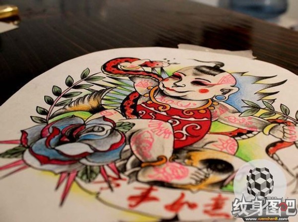 能面万媚纹身手稿_52张日式能剧面具纹身手稿图案素材欣赏