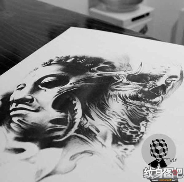 能面万媚纹身手稿_52张日式能剧面具纹身手稿图案素材欣赏