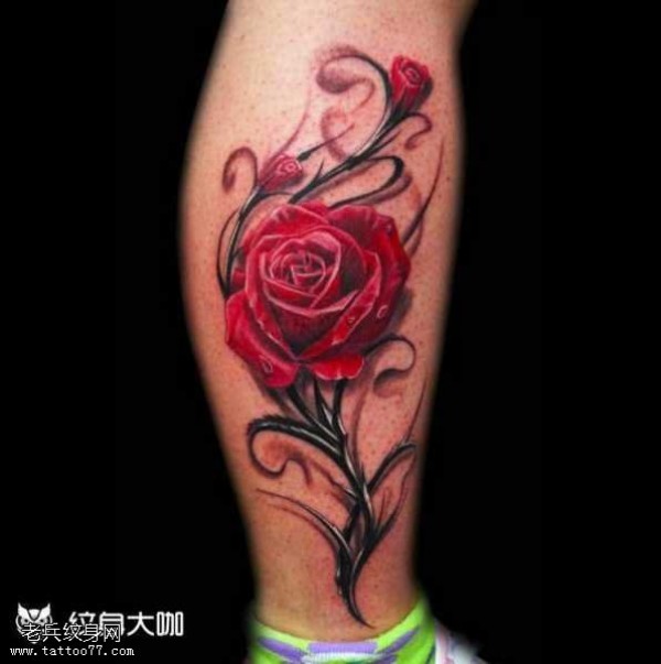 腿部玫瑰纹身图案