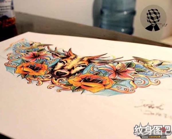 一组18张漂亮的欧美newschool动物纹身手稿图案