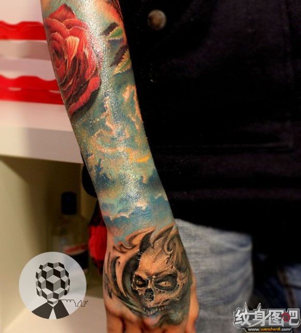 手腕处疤痕遮盖的纹身效果图