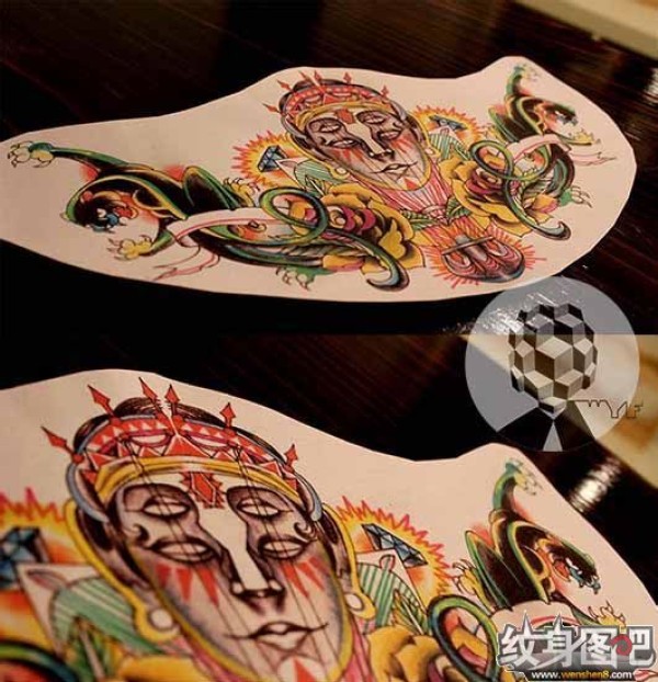 能面万媚纹身手稿_52张日式能剧面具纹身手稿图案素材欣赏