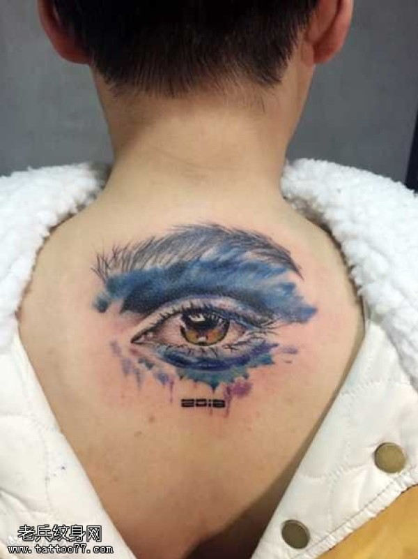 背部逼真眼睛纹身图案