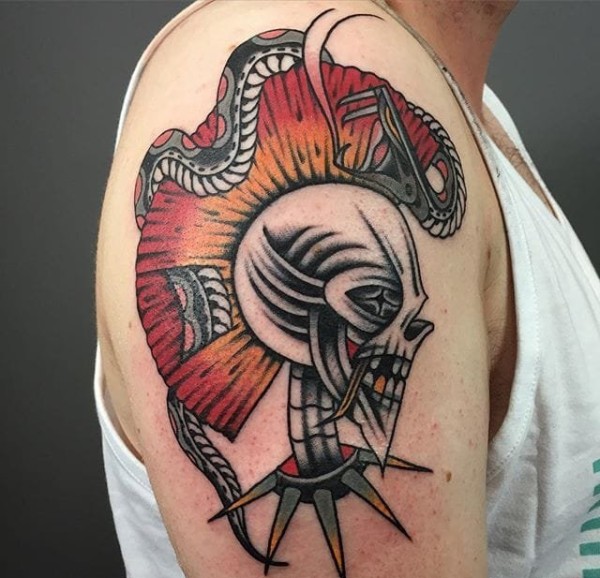 oldschool风格的拼接花臂纹身作品欣赏