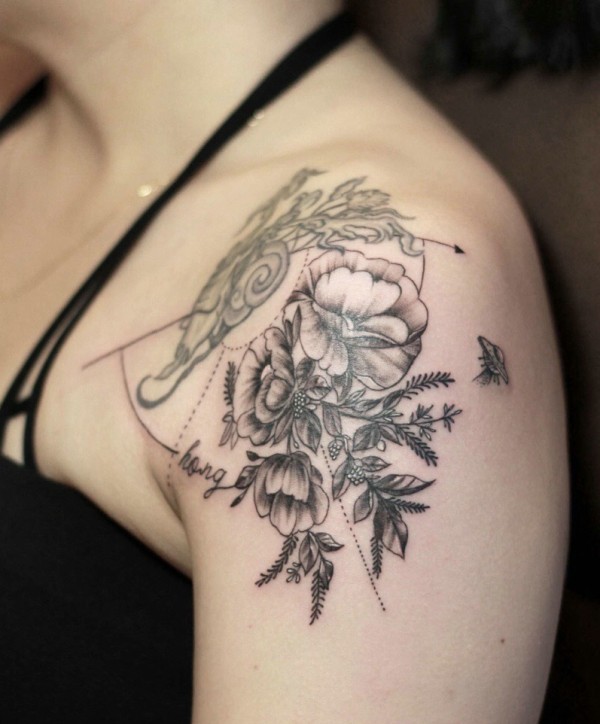 女生肩花纹身_15张女性双肩对称的肩花纹身图案作品图片