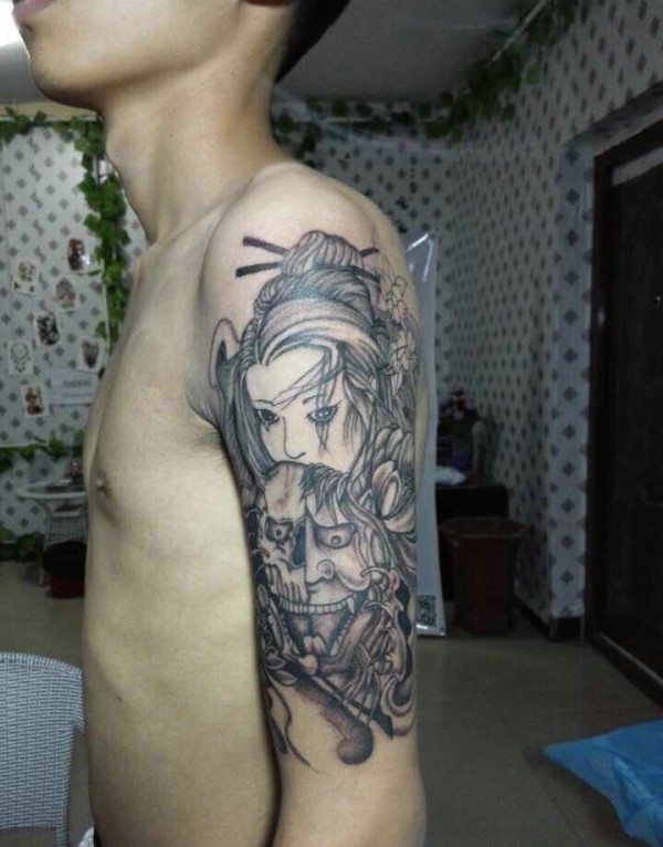 花妓与般若在一起的手臂纹身图案
