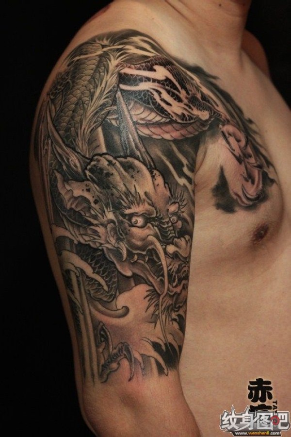 龙纹身手稿_一组老传统黑灰龙手稿纹身图案