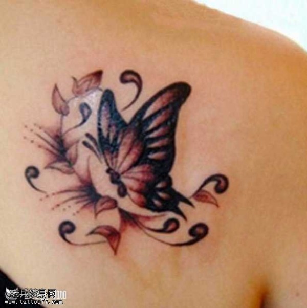 女生肩花纹身_15张女性双肩对称的肩花纹身图案作品图片