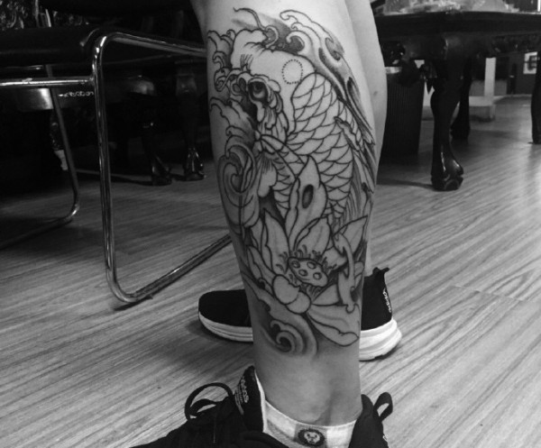 传统鲤鱼花小腿纹身_腿部纹身图案大全_纹身图吧