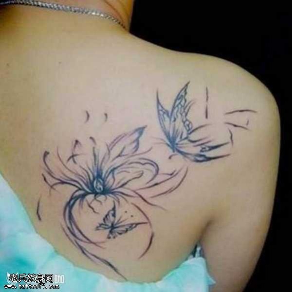 女生肩花纹身_15张女性双肩对称的肩花纹身图案作品图片