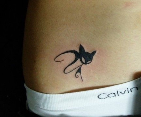 女生后腰纹身黑白灰风格抽象线条纹身图案
