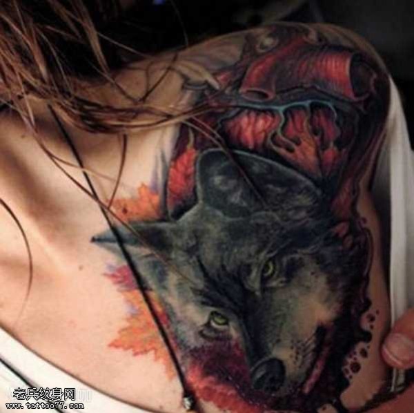 肩部个性狼纹身图案