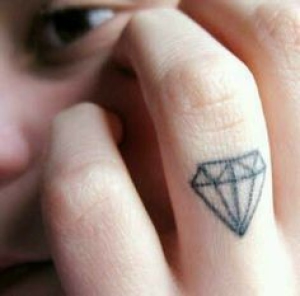 手指上小小的钻石图腾纹身
