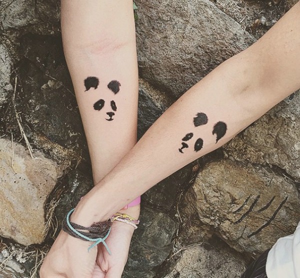 适合情侣手臂可爱点状小熊猫纹身图案