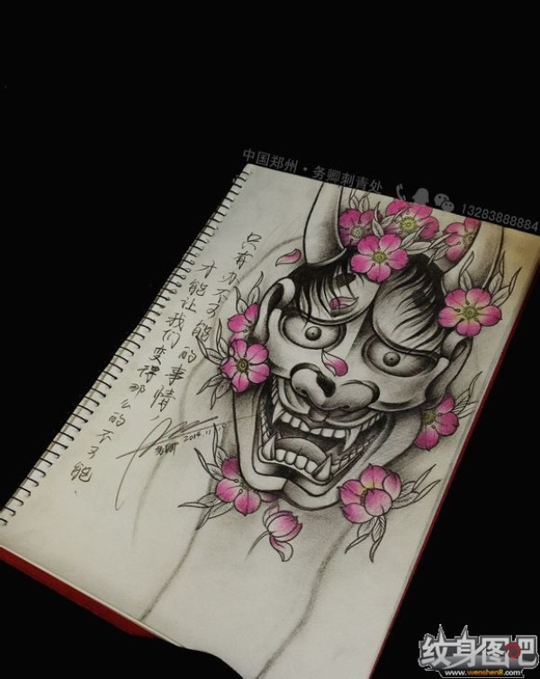 能面万媚纹身手稿_52张日式能剧面具纹身手稿图案素材欣赏