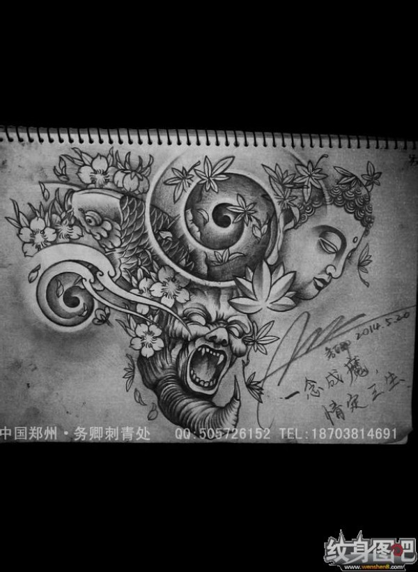 双鱼座纹身手稿_45张十二星座之双鱼手稿纹身图案