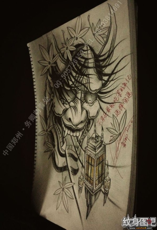 能面万媚纹身手稿_52张日式能剧面具纹身手稿图案素材欣赏