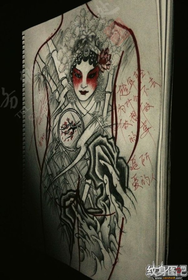 能面万媚纹身手稿_52张日式能剧面具纹身手稿图案素材欣赏