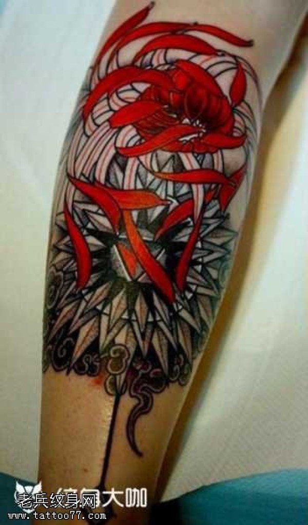 传统鲤鱼花小腿纹身_腿部纹身图案大全_纹身图吧