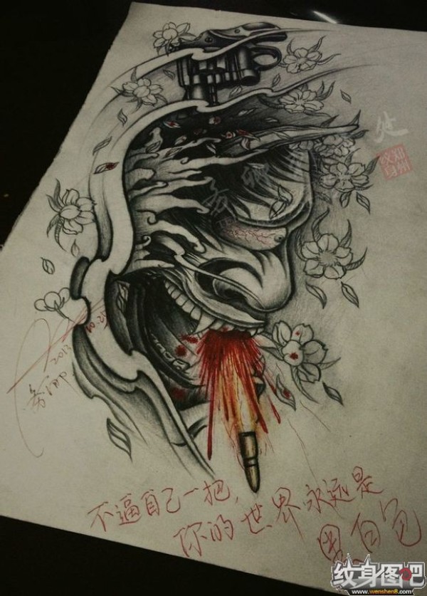 能面万媚纹身手稿_52张日式能剧面具纹身手稿图案素材欣赏