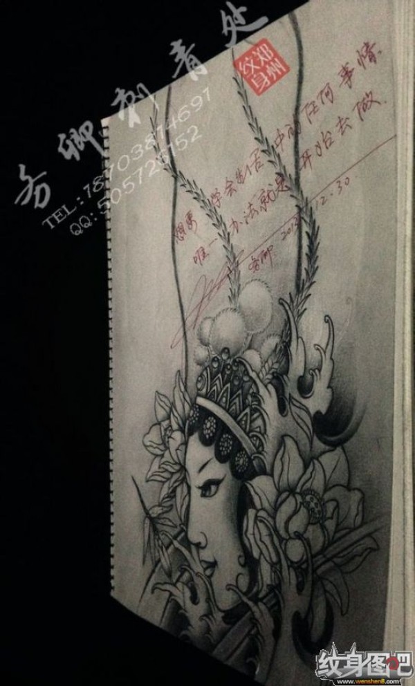 能面万媚纹身手稿_52张日式能剧面具纹身手稿图案素材欣赏