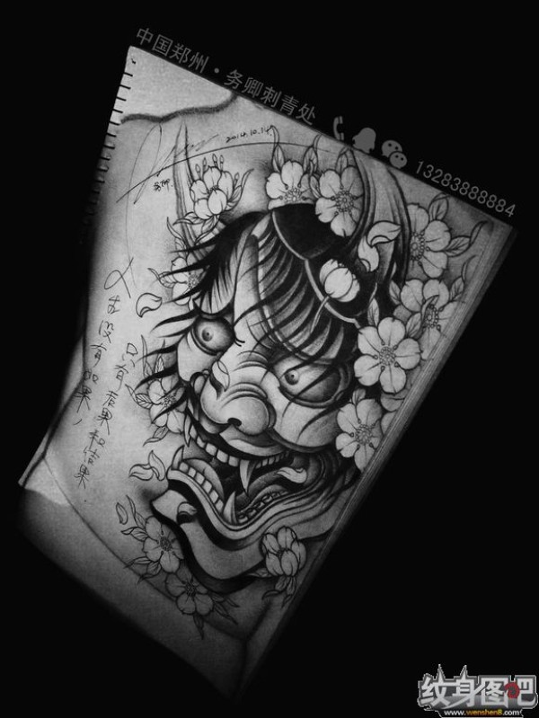 能面万媚纹身手稿_52张日式能剧面具纹身手稿图案素材欣赏