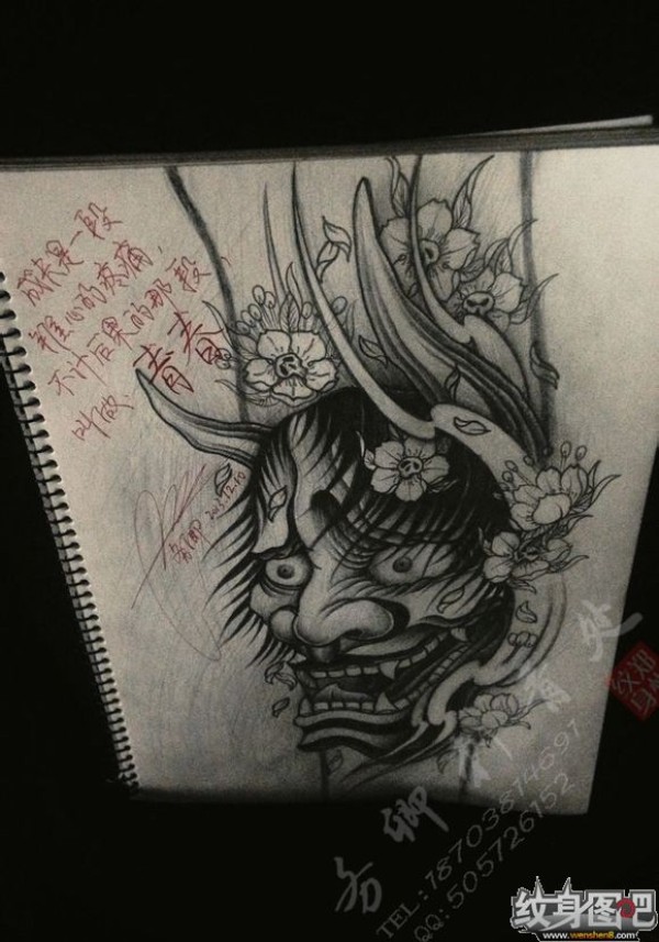 能面万媚纹身手稿_52张日式能剧面具纹身手稿图案素材欣赏