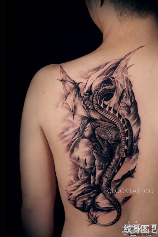 龙纹身手稿_一组老传统黑灰龙手稿纹身图案