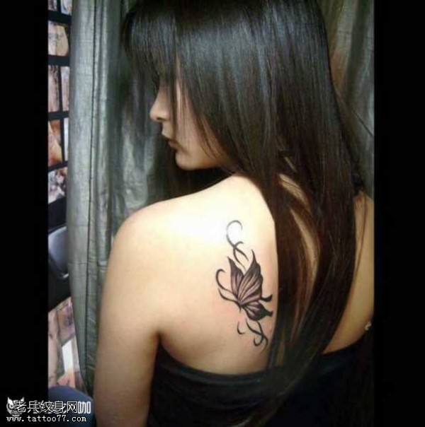 女生肩花纹身_15张女性双肩对称的肩花纹身图案作品图片