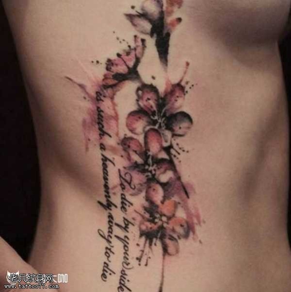 分享一款腰部时尚性感的蝶恋花纹身图案_腰部纹身图案大全_纹身图吧